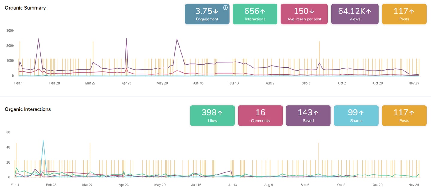 رسم بياني يوضح الوصول للمنشورات والتفاعل عليها